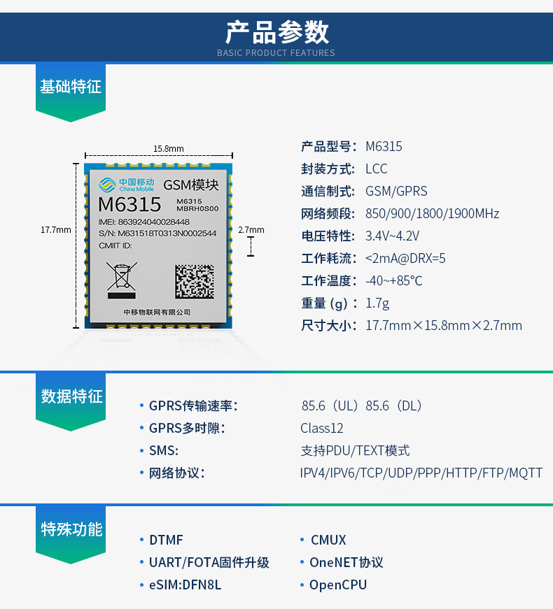 中國移動OneMO GSM/GPRS模塊物聯網無線通信M6315-兼容移遠M26